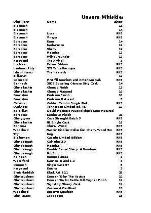 Ab jetzt werden die Whisky als Blog Einträge geführt, damit die Seite übersichtlich bleibt. Es werden immer nur die letzten beiden Einträge (aktueller Whisky, bereits verteilter Whisky) angezeigt.